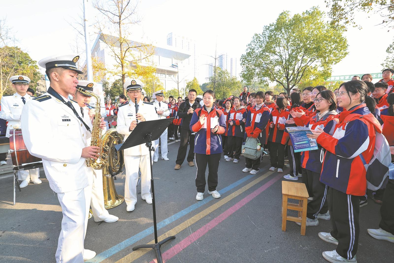 学生们将观看海军技术学院军乐队的表演。全媒体首席记者 通讯员 杨东 供图:陈艳、邓琳
